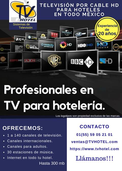 -Ambientaliza todas las habitaciones, lobby, salones de eventos, pasillos, sala de juntas, oficinas, restaurante con el mejor audio. tele cable hotel tvcable hotel television cable hotel